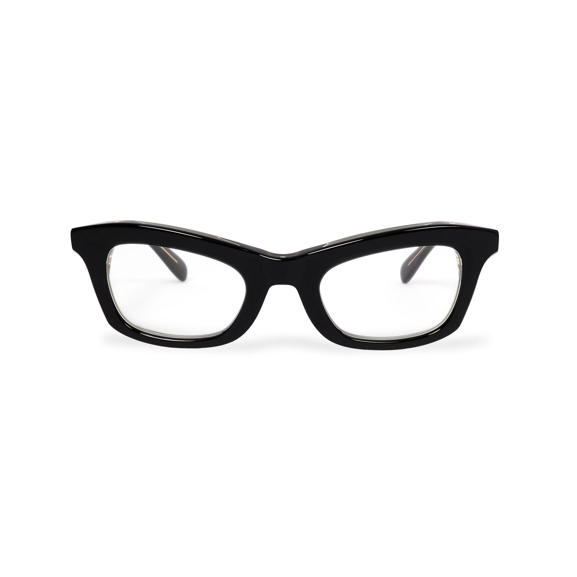 吊り上がったブローライン。アンダーはウェリントン的な落ち着きある形状を持ったボリューミーで個性的なデザインが特徴。