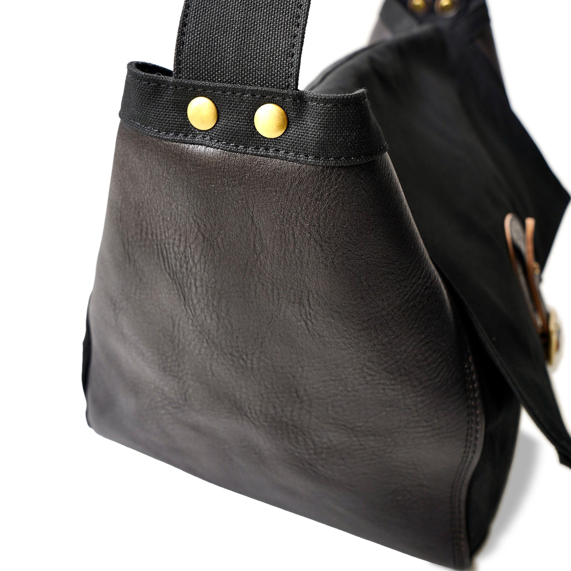 帆布やレザーの経年変化の楽しみは勿論、使い込む程に体にレザーが馴染み、使い易さと共に愛着が増すバッグです。