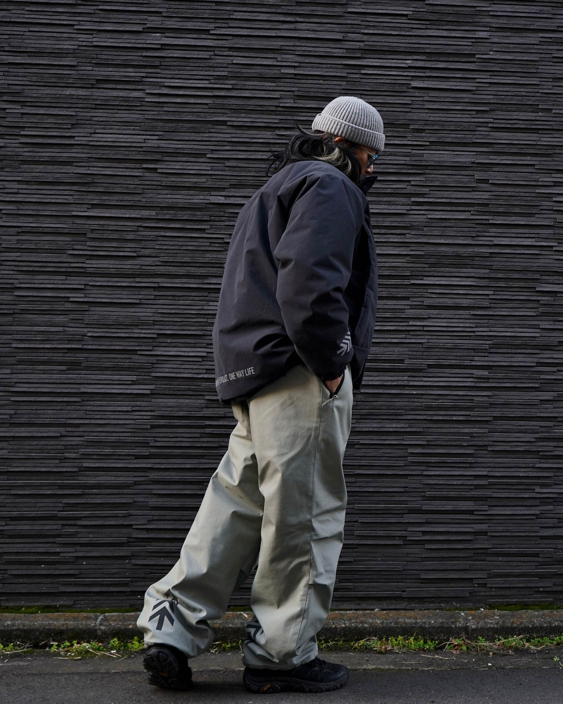 昨年のモデルとの変更点は、裾を5センチほど長めに設定し、ウエスト周りの形状を変更し履きやすさはシルエットにこだわりながらも防寒着(ギア)としての性能をより重視。